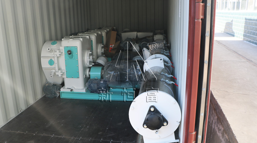本次发货的主要设备有:7根螺旋提升机、4台350环模颗粒机、50*40粉碎机、4组不锈钢喂料器和调制器、碳钢沙克龙、关风器、缓冲斗等。