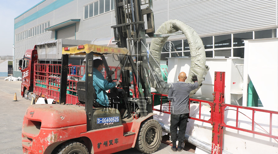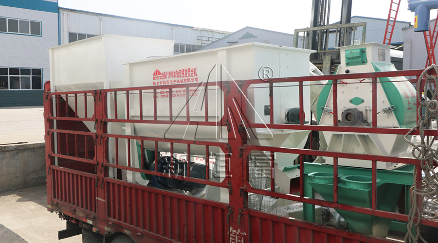 本次发货的主要设备有:56*40粉碎机、螺旋输送机、2m³待混仓、单轴双螺旋混合机、之字除铁器、配电柜等。