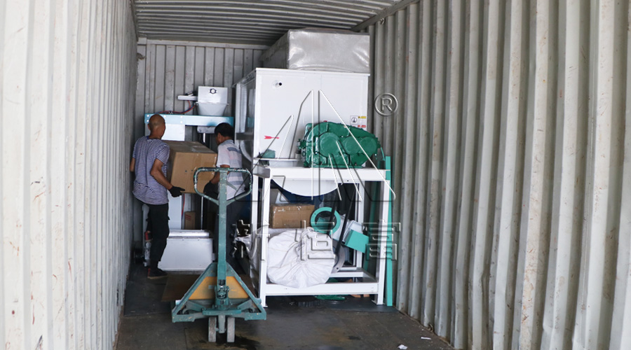 此次发货的主要设备有:56*36水滴粉碎机,1吨皮带式单轴混合机,304颗粒机,斗式提升机,螺旋输送机,冷却器,关风器,破碎机,敞口式包装机,电柜以及锤片、筛网、颗粒机模具等配件。