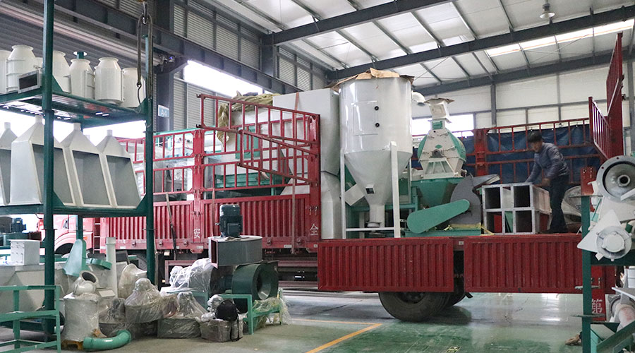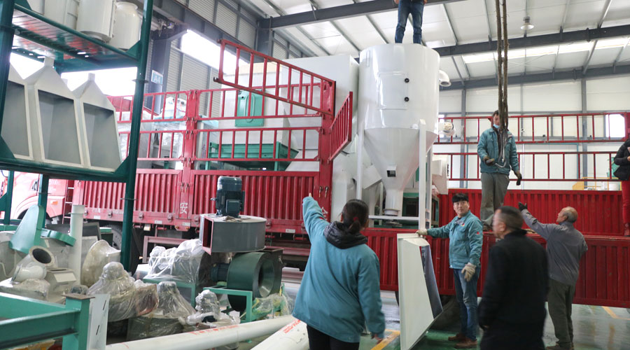 此次发货的主要设备有多功能粉碎机,9HL1000型立式草粉混合机,水滴式粉碎机,卧式螺带混合机500型,250型环模颗粒机,逆流式冷却器,强制喂料器,螺旋输送机,斗式提升机,全自动包装机,沙克龙,关风器,风机,料仓,之字形除铁器以及风网冷却管道等。