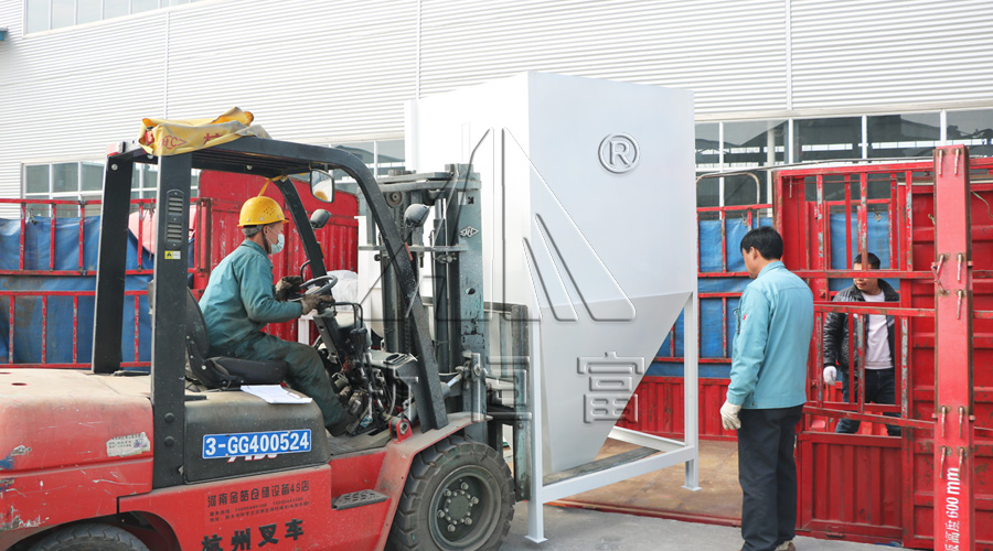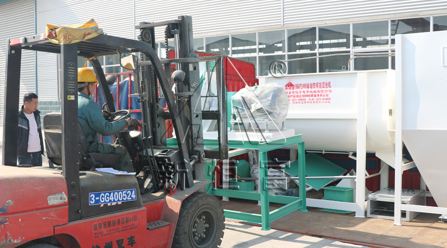 本次发货的主要设备有:56*4水滴式粉碎机及支架、待混合仓、螺旋输送机、磁选器、单轴混合机、电控柜等。